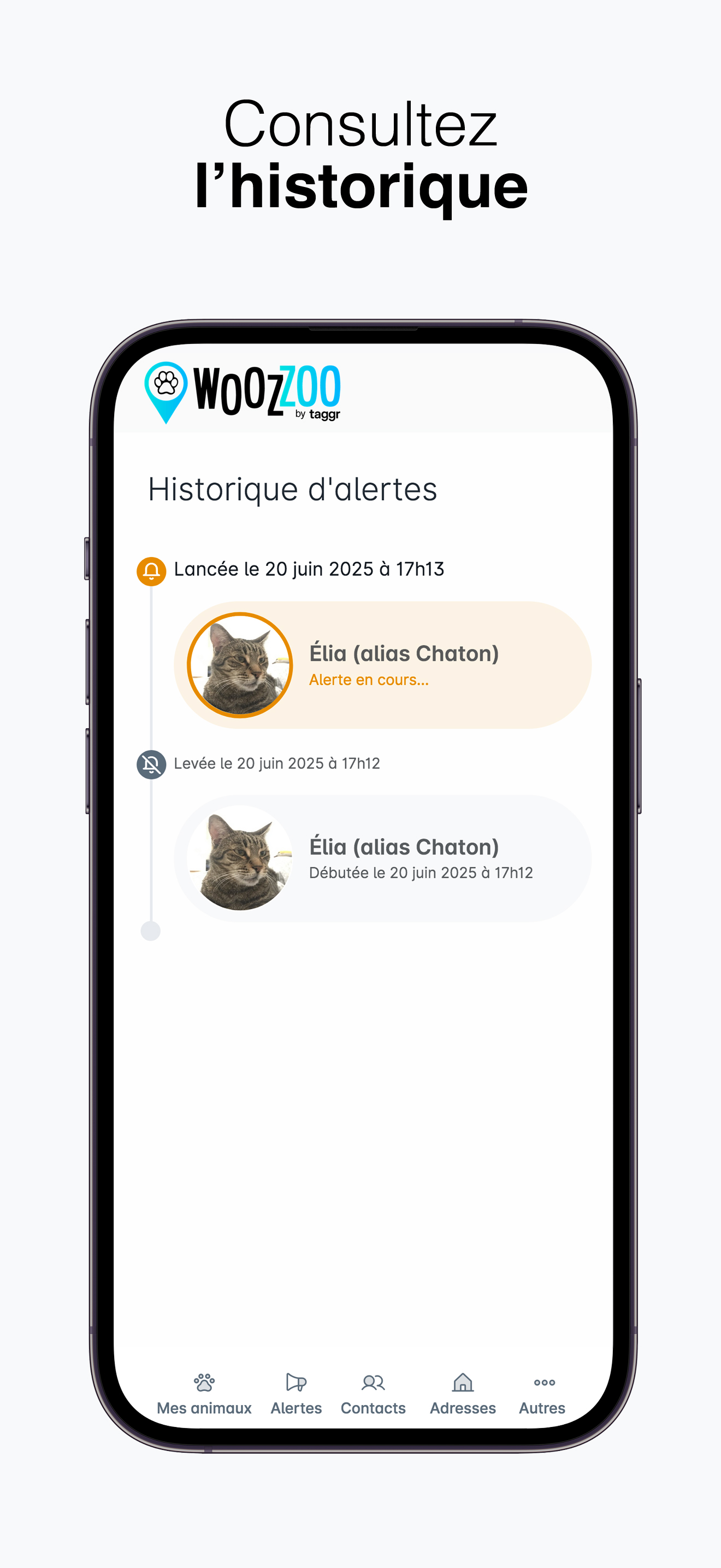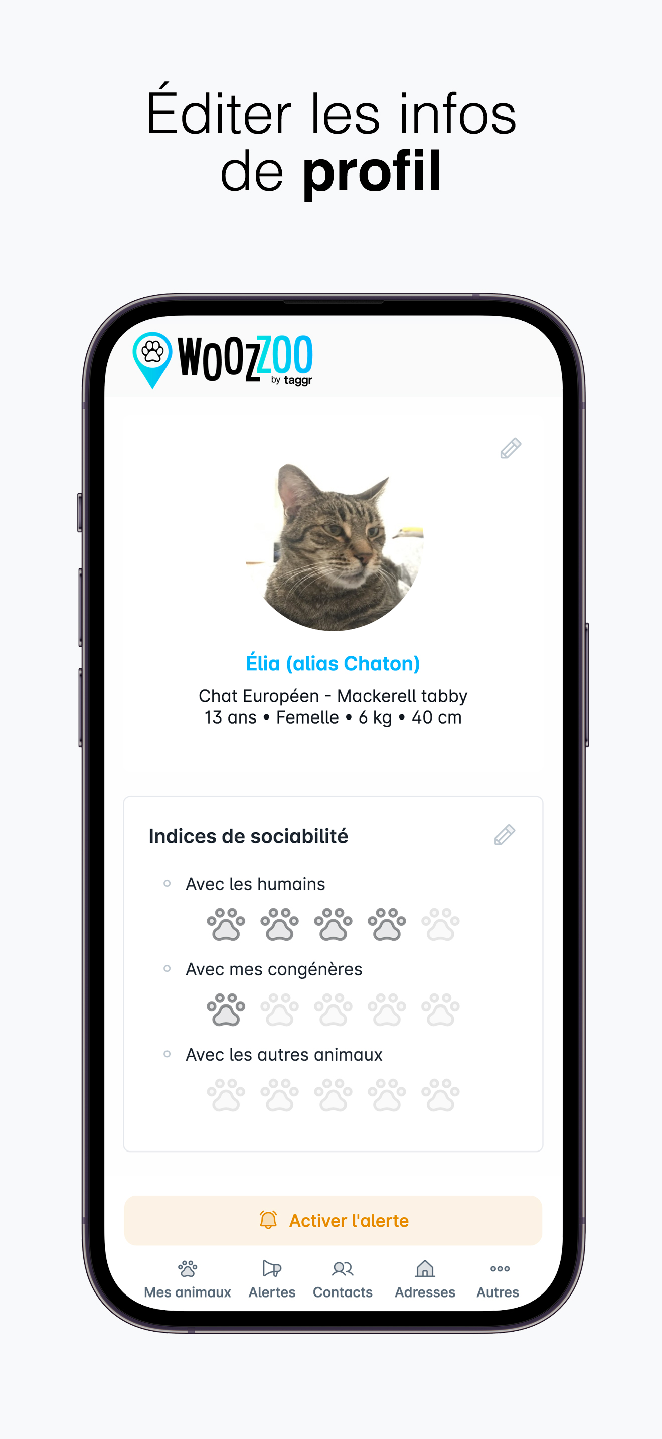 Un profil d'identification personnalisable avec les infos essentielles et les consignes à suivre pour aider la communauté à mettre en sécurité votre compagnon.